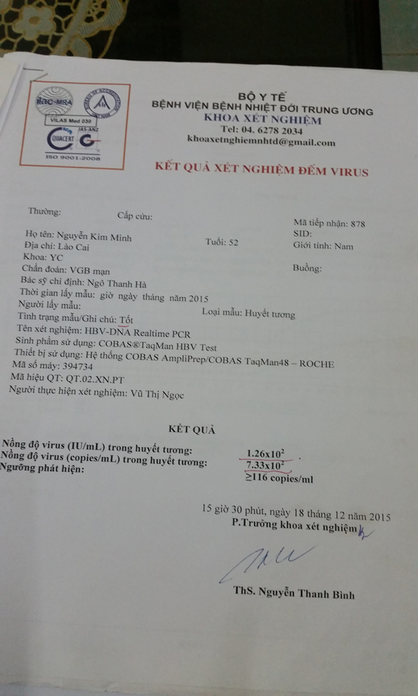 thuốc đông y uống ổn đấy cả nhà ạ. tôi mới uống hết 1 liệu trình chỗ bsi trần thu hà ở HQV đi bệnh viện kiểm tra thử xem thế nào để còn biết lối mua tiếp hay dừng. kết quả lượng virus giảm được 1/3, men gan cũng ổn định hơn rồi, mừng qua. Mai sẽ qua phòng khám của bsi Hà cắt thêm 2 liệu trình nữa. Chia sẻ để cả nhà biết đến: