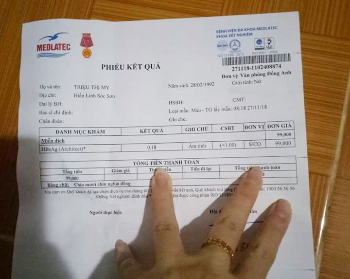 Tôi là Đào thị nhiên năm nay 29 tuổi sống ở HN bị viêm gan b hơn 5 năm nay. Từ năm cuối đại học phát hiện bị bệnh đến nay tôi đã điều trị nhiều nơi nhưng k khỏi, lượng virus thời điểm cuối năm 2019 tôi đi xét nghiệm cao gấp 5 lần thời điểm mới bị bệnh. Đợt tháng 1/2020 tôi được người bạn giới thiệu cho chỗ bsi Nguyễn Quang Khoa .Tôi có qua kiểm tra và mua thuốc, uống hết 1 liệu trình thấy đỡ được đôi phần nên cắt thêm 2 liệu trình nữa về uống. Tính đến nay là vừa tròn 3 tháng dùng thuốc đến bệnh viện nhiệt đới kiểm tra thì được bsi thông báo âm tính với virus hbv. Đến bsi còn k tin được, thật sự k nghĩ là có ngày tôi thoát được căn bệnh này. Nay chia sẻ kết quả xét nghiệm để ai bị bệnh yên tâm qua điều trị.